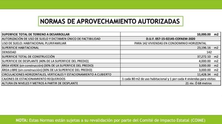 PARA DESARROLLAR 142 VIVIENDAS de 160 m2 aproximadamente 21 niveles.