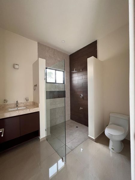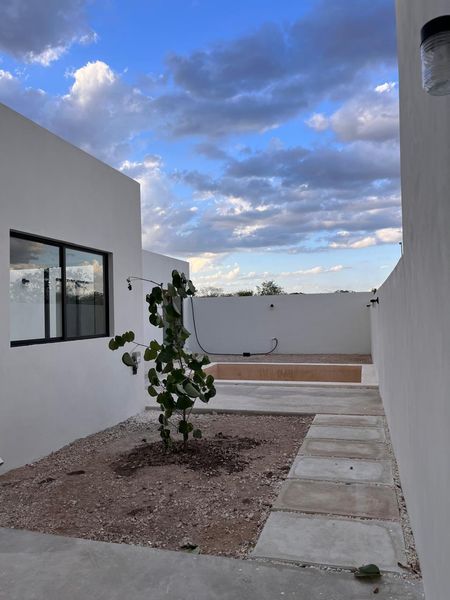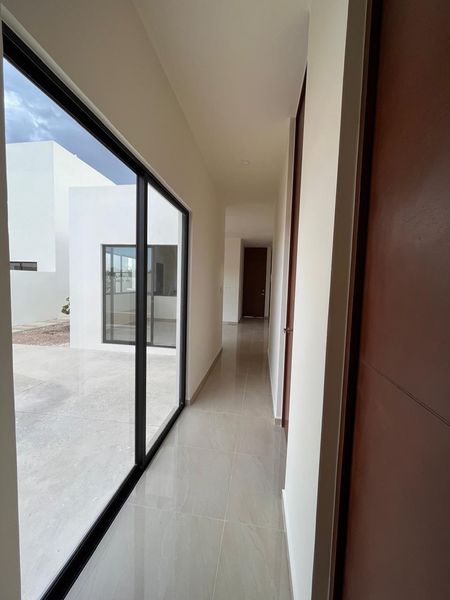 - La casa se encuentra en un fraccionamiento al norte de Mérida con calles amplias de 9m de ancho, banquetas anchas, con agua potable, electricidad sin cables.