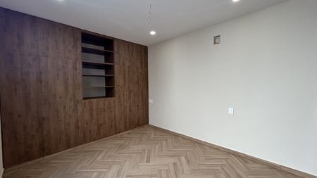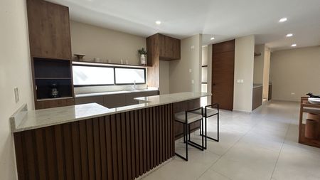 Carpintería de muebles en cocina, Carpintería de muebles para TV y CAVA en planta baja, Carpintería en clóset de blancos en planta alta, Carpintería de clósets en recámara secundaria, Carpintería de vestidor en recámara principal, Campana en cocina, Tanque de gas estacionario.
