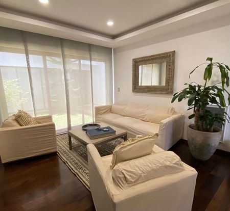 Casa en condominio en calle cerrada con vigilancia en la parte baja de Las Águilas, con 6 años de antigüedad. En planta baja consta de vestíbulo, medio baño, sala, comedor, cocina muy amplia, terraza descubierta y jardín. En primer nivel, 3 recámaras cada una con baño y vestidor. En segundo nivel, área social con medio baño y terraza parcialmente techada, cuarto de servicio y de lavado. Tiene estacionamiento techado para 4 autos y una bodega de 16M2.