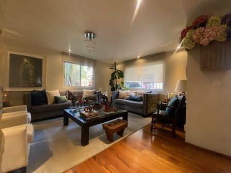 Preciosa casa en condominio de solo 7 casas en el corazón del icónico barrio de Coyoacán. El condominio tiene un jardín común muy bonito con asador y vigilancia las 24 horas. En planta baja, consta de vestíbulo, medio baño, estudio, cocina con espacio para ante comedor, y sala y comedor muy espaciosos. En primer nivel, 3 recámaras cada una con baño y la principal con vestidor. En segundo nivel, gran sala de estar/tv con salida a una terraza muy agradable, cuarto de servicio y área de lavandería. ¡INVIERTE EN TU CALIDAD DE VIDA!