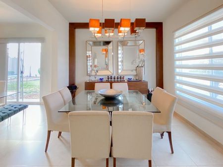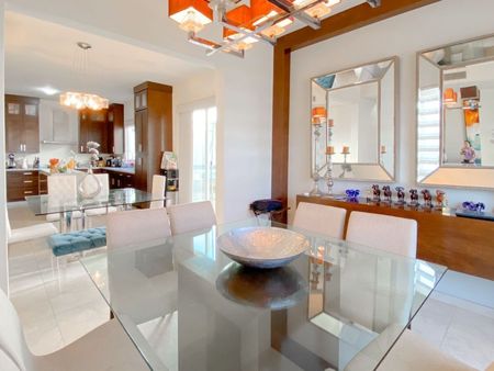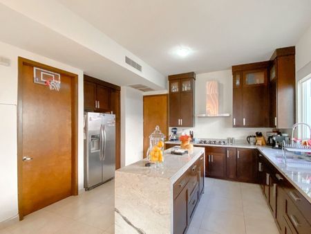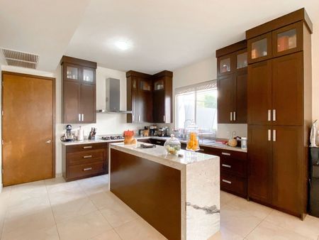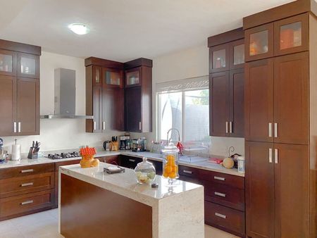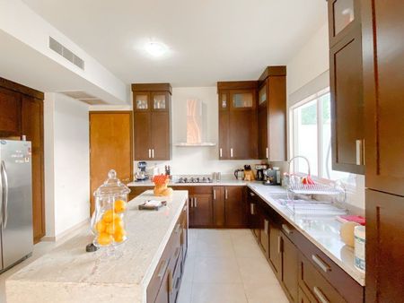 2 aires de 4 toneladas y 1 de 5 toneladas, cisterna, boiler, sistema contra termitas, lámparas, persianas, pisos de madera (duela) en las 3 recámaras, cocina con cubierta de granito, 3 walk-in closets, mueble y maderas empotradas en estancia y comedor.