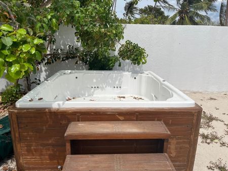 Jacuzzi con amplio espacio para hacer un bar y asados