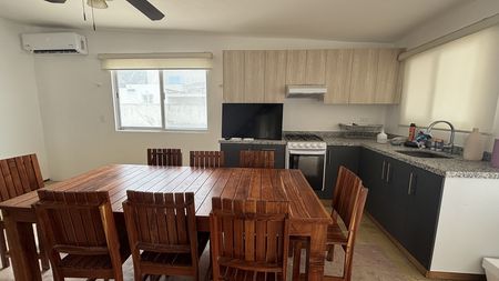 comedor de 8 piezas con ventiladores y aire acondicionado en el área común