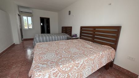 Recámara secundaria con dos camas matrimoniales y baño completo aire acondicionado y cortinas black out