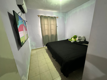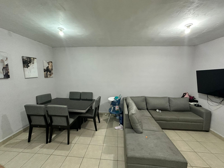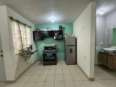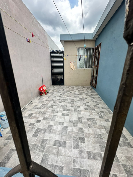 Casa con area de cochera sin techar, 2 recamaras 1 baño, cocina con estufa y fregadero, con proteccion, Antiguedad 4 años, lista para habitarse.