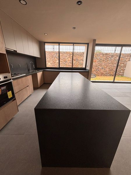 En la planta baja encontrarás una sala y comedor que se integran de manera armoniosa con la terraza y el jardín, ideales para reuniones familiares o sociales. La cocina abierta cuenta con cubierta de granito negro y barra desayunadora, además de una amplia alacena que brinda gran capacidad de almacenamiento. También dispone de cuarto de lavado, cuarto de servicio con baño, hall de televisión, pasillo lateral con acceso directo al jardín y cochera techada para 3 autos, que aporta funcionalidad y comodidad.