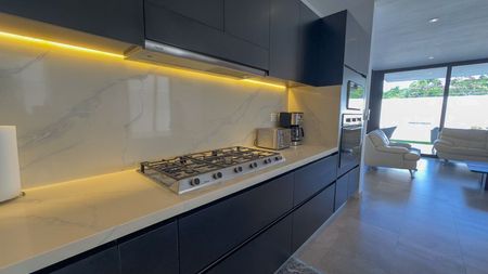 - Cocina: mesetas de cuarzo en toda la cubierta incluyendo back splash y mármol negro estelar en isla.