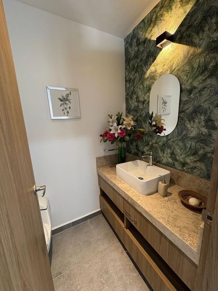 Cuenta con vigilancia 24/7, alberca con chapoteadero, área de asador, firepit, salón de eventos, pérgola, áreas verdes, salón de juegos, sky bar, business center y 19 cajones de estacionamiento para visitas.