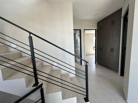 Planta alta: recámara principal con vestidor y baño completo, dos recámaras con su clóset y baño en cada una, roof garden, sala de TV