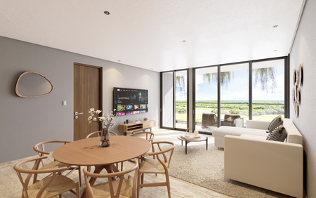 Ubicada en planta baja en Lausana Residencial, esta unidad combina modernidad, un amplio espacio exterior y vistas al lago en un entorno seguro. Distribución inteligente: