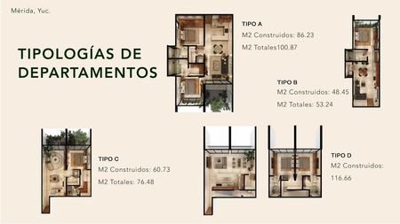 Departamentos de una y dos recamaras según modelo: A,B,C, y D. con precio hasta de 2,670,000 con 86.23 m2, todos con estacionamiento.