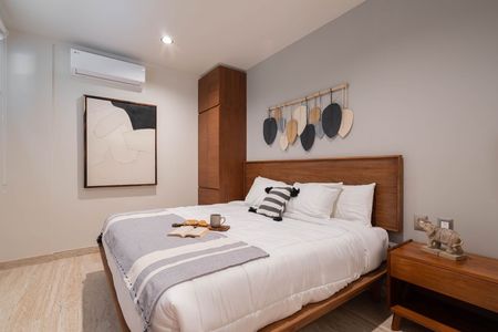 Desarrollo residencial que consta de 45 departamentos de 1, 2 y 3 recamaras con diseños característicos de la región, en tonalidades frescas que dan lugar a espacios funcionales, integrando la naturaleza con el arte tradicional mexicano, representado mediante diversas corrientes como murales, esculturas y pinturas.