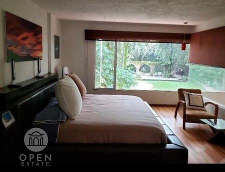 Casa en calle cerrada con pluma de vigilancia enfrente de la casa. Hermoso jardín rodeado de árboles concepto in & out. Equipada con chimenea de gas en sala, muros radiantes en recámara principal y cuarto de TV. Tina hidromasaje, cisterna 10.000 litros, caldera Bosch. Maderas sólidas y construcción reforzada con concreto armado. Preparación para ampliación en PA para otra habitación y baño. Aprovecha la oportunidad de adquirir una propiedad única.