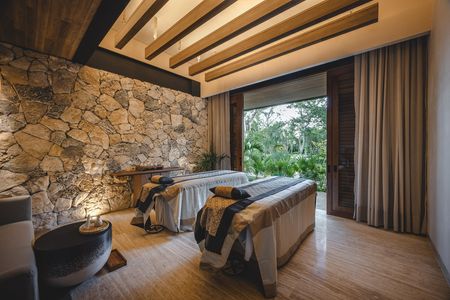 Área de yoga y spa con tratamientos mayas y asiáticos