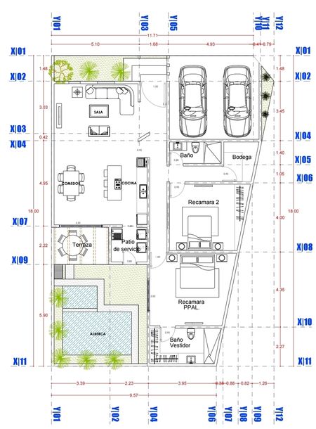Medidas 11.71 de frente terminando en la parte de atrás con 9.5 x 18.80m² de largo