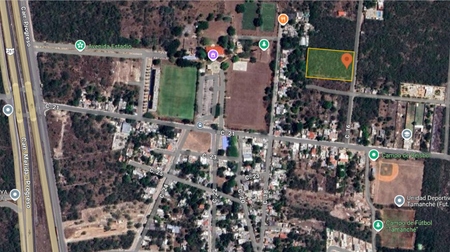 Terreno ubicado a 4 esquinas de la carretera Mérida-Progreso en Tamanché, rodeado de parques, canchas de fútbol, beisbol, salones de eventos y más.