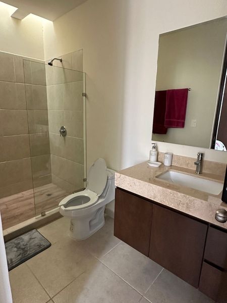 Baño completo (con espejo y cristal en la regadera y mueble de baño)