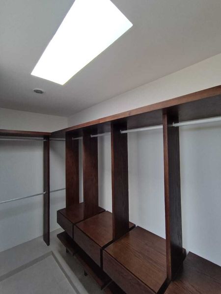 Calentador eléctrico, barandal en escaleras, cocina con gaveteros superiores e inferiores con madera de cedro y encino, barra desayunadora de granito y gavereros inferiores, parrilla eléctrica de cuatro quemadores, mueble de tv, fijo de cristal templado en baños, closets vestidos en recámaras, closet de blancos, espejos en baños.