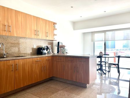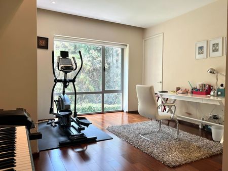 Departamento en condominio de 6 torres con casa club, áreas verdes y doble acceso: por Vasco de Quiroga (frente al centro comercial Santa Fe) y por la carretera Mex-Toluca. La casa club tiene alberca, carril de nado, sala de cine, salón para jóvenes, jacuzzi, gimnasio con salón de sppining, cancha de tenis y de paddle, jardines recreativos y para eventos, área de mascotas y mucho mas. El departamento se ubica en la torre Caobas en el segundo nivel con elevador directo al piso, sala y comedor con ventanales de piso a techo y salida a terraza, cocina equipada con antecomedor, sala de tv muy amplia y acogedora, 3 recámaras cada una con baño y vestidor, cuarto de servicio y de lavado integrados, 3 estacionamientos y bodega.
