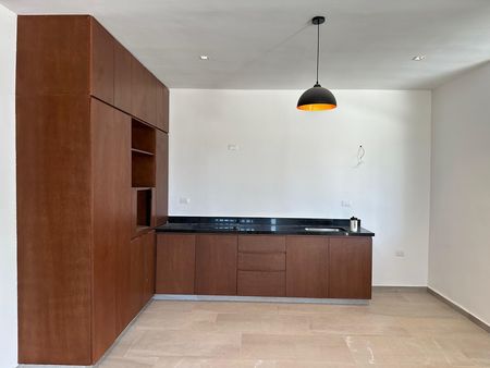 Cocina con parrilla eléctrica , granito y gavetas inferiores de madera