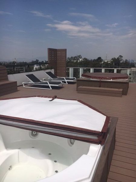 Amenidades: Alberca, estacionamiento visitantes, skybar, business center, Spa, jardín, gym, lobby con concierge, Roof Garden, alberca cubierta con carriles de nado, área deportiva, lounge bar, sala de música y cine, pista de jogging, área arborada