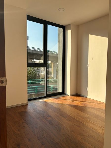 Cuenta con sala comedor, cocina integral, dos recamaras amplias e iluminadas, dos baños completos con cancelaria, closets de la mejor calidad, pisos en recámaras de madera y en sala comedor de loseta .