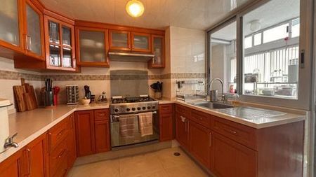 El departamento cuenta con espacios generosos y bien distribuidos. Una de sus grandes ventajas es que la sala y las recámaras tienen vista hacia un agradable jardín de una casa vecina, lo que garantiza privacidad y una vista despejada, sin edificios al frente.
