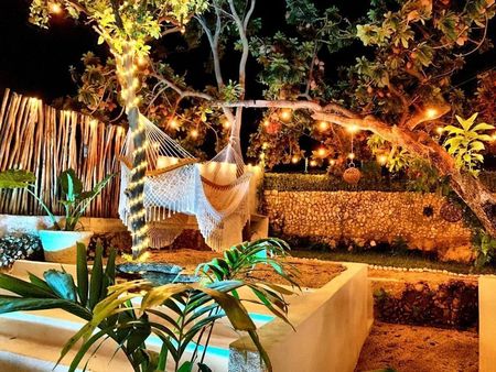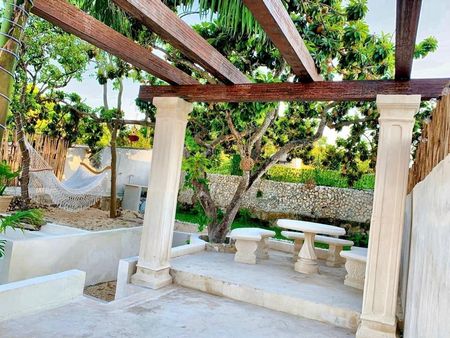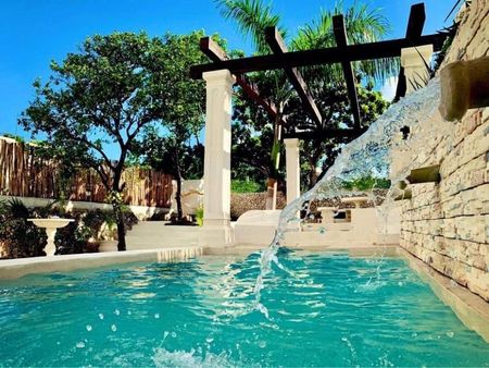 Ideal para vivir o para negocio Airbnb, árboles frutales (mamey, huaya, aguacate, naranjos), jardín interior, piscina (7x3.5) y asoleaderos con acabados Chukum, dos baños completos con regadera, el baño principal de 7.5m de largo con doble lavabo, doble regadera y tina para dos personas.