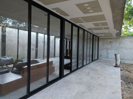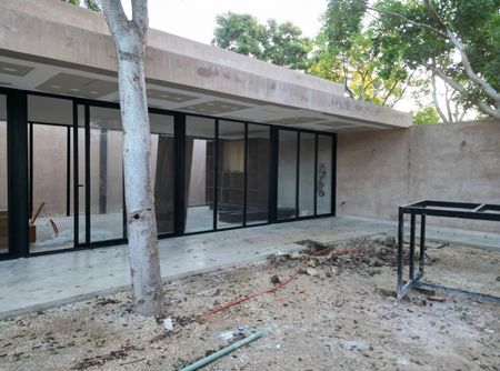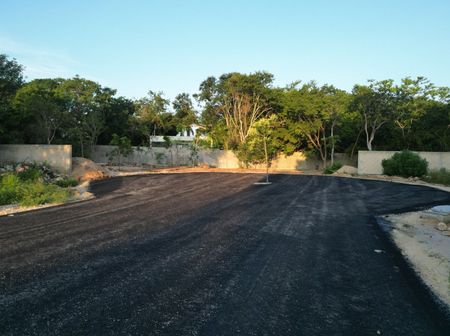 estacionamiento, alumbrado público por iluminarias y postes de luz aprobados por el ayuntamiento de Mérida, muretes
