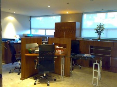 las oficinas cuentan con doble acceso una de ellas por la calle 12 de octubre , entrada principal por viaducto estacionamiento para 4 autos vestibulo,recepcion,2banos,area verde y al aire libre sala de espera ,cocineta integral