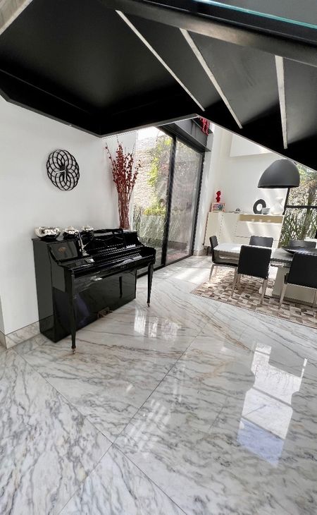 Toda la residencia cuenta con acabados de lujo, interior con pisos de mármol tipo arabescato, luz inteligente en toda la residencia y calefacción hidronica en los pisos, mosquiteros europeos de acordeón, leds en toda las áreas de la residencia.