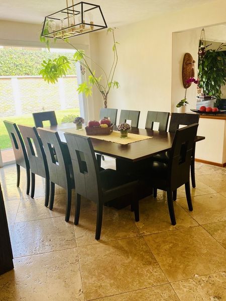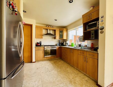 Espléndida residencia en venta en Lomas de Valle Escondido, Atizapán de Zaragoza. 772 m2 de terreno y una construcción de 429.06 m2. La casa se rodea de un amplio y verde jardín. Planta baja: cocina integral con gran alacena y desayunador con salida directa al jardín, así como el