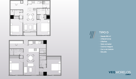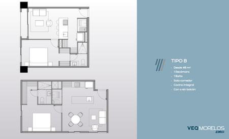 Departamentos tipo suite de 1, 2 y 3 recámaras