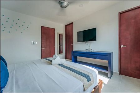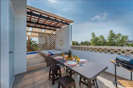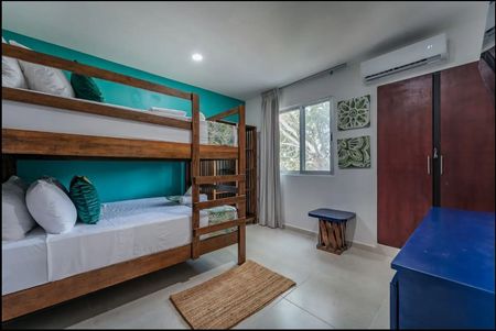 El espacio más versátil y divertido de la villa. Aquí se encuentra una **recámara con litera individual**, perfecta para los más jóvenes de la familia. Además, disfruta de una **amplia terraza** que da hacia la calle, decorada con **pasto sintético**, creando un espacio ideal para reuniones al aire libre. Relájate en la **tina con pérgola** y una zona abierta que te invitará a pasar momentos inolvidables bajo el sol.