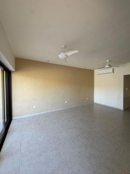 Sala–comedor, cocina equipada, terraza, una recámara, baño completo, estacionamiento, piscina, cuarto y baño de servicio.