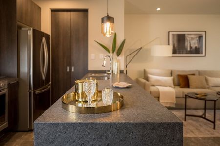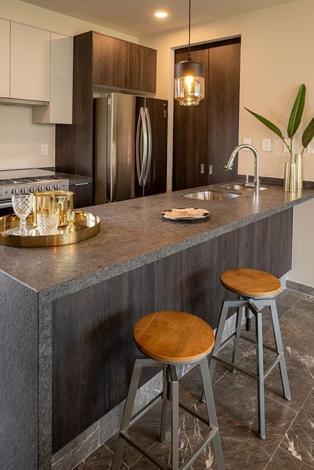 - Cocina con barra de granito texturizado de diseño exclusivo.