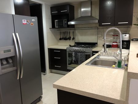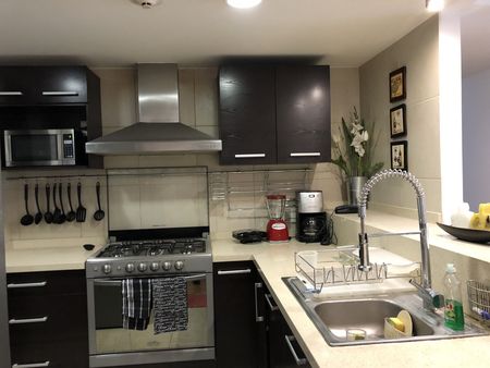 Precioso departamento de 3 recamaras totalmente amueblado y equipado. Desarrollo de lujo, semi nuevo enfrente de Costo en Cervantes Saavedra, con seguridad 24 horas, áreas comunes increíbles. Decorado con muy buen gusto.