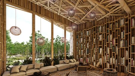 biblioteca, salones de artes marciales, estudio de yoga, salón de pesas, terraza abierta