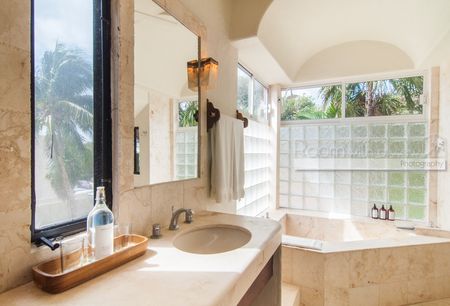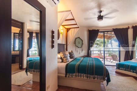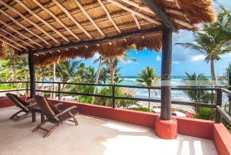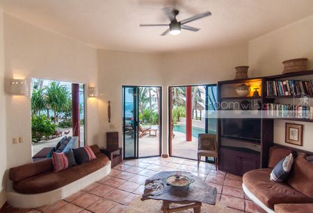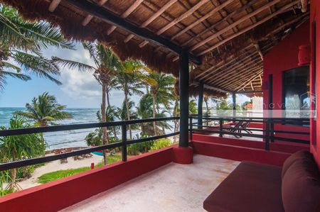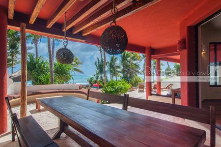 Desde cualquier rincón de esta villa, disfrutará de impresionantes vistas al Mar Caribe, llenando los espacios con luz natural y brisa marina. En la amplia terraza frente al mar, encontrará una alberca y palapa rodeada de palmeras, donde podrá contemplar la arena blanca y las aguas cristalinas a solo unos pasos de su puerta. Además, la propiedad incluye dos kayaks dobles, perfectos para explorar la costa.