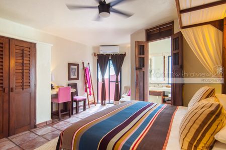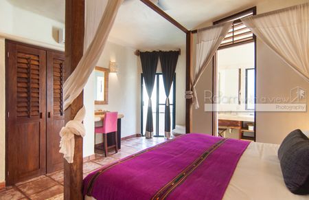 Los techos altos, pisos de terracota mexicana hechos a mano, puertas de madera talladas artesanalmente y muros de estuco finamente detallados crean una atmósfera de elegancia atemporal. Sus amplias áreas de sala y comedor brindan un generoso espacio para grandes reuniones, mientras que sus rincones privados invitan al descanso y a la relajación. Cada una de las siete habitaciones cuenta con baño privado y cajas de seguridad.