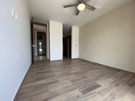 Dos lugares de estacionamiento, amplio espacio de sala comedor más terraza. Cocina integral, área de lavado, 2 amplias recámaras, principal con walk in closet y baño, más otro baño completo. Equipado con cortinas y ventiladores de techo en recámaras y sala.