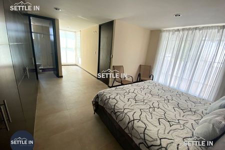 - Recamara principal amueblada, con cama KS, amplio closet y con baño completo