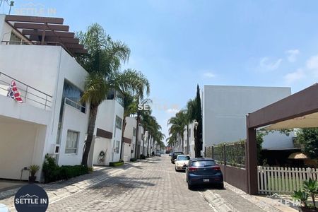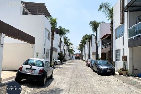En renta casa completamente amueblada, lista para habitarse, en zona turística de San Pedro Cholula, muy cerca de la UDLA (800 m), Zona Arqueológica de Cholula (1000 m), a 4 cuadras de la recta a Cholula, en fraccionamiento cerrado con vigilancia, área de juegos para niños, área de convivencias (Palapa), casa de tres niveles: