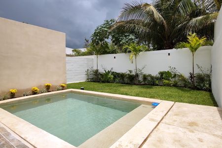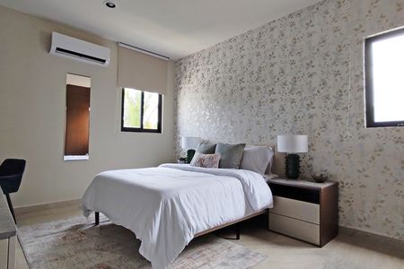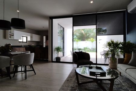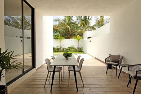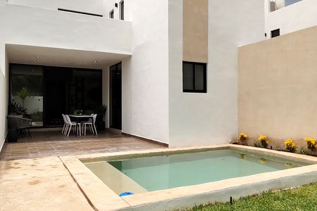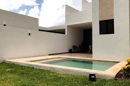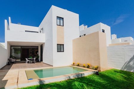 Casa en privada en la zona de Conkal, cuenta con tres recámaras, cochera techada para dos autos y amenidades como juegos infantiles, alberca para niños, zona e grill.