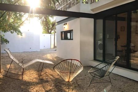 • Salas con sofás tipo Acapulco, sillas y mesas esquineras de Dzalam.