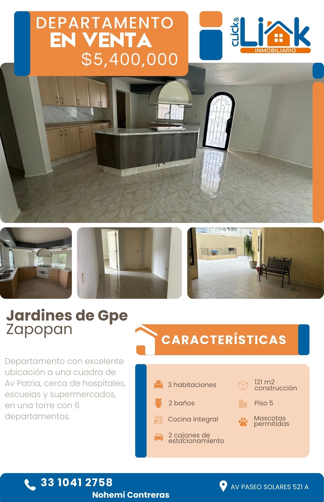 Departamento con excelente ubicación a una cuadra de Av Patria, cerca de hospitales, escuelas y supermercados, en una torre con 6 departamentos.