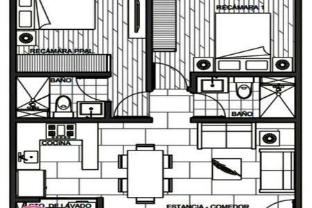 Cocina integral abierta con cubierta de granito y alacena, área de lavado, 2 recámaras amplias, 2 baños completos. la recámara principal con clóset, baño y cabe cama King size, 2 burós y cómoda. La 2da recámara con clóset y comparte baño con el área de visitas.