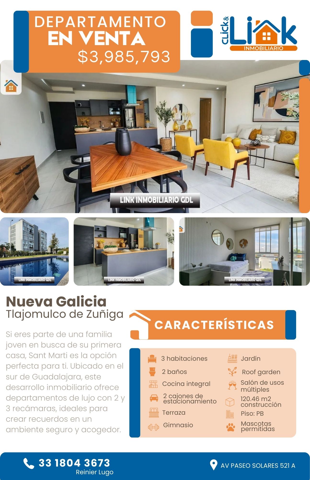 Ubicado en Nueva Galicia Residencial, acceso a importantes zonas de interés y muy cerca de escuelas, Hospitales, plazas y centros comerciales como: Universidad ITESO, Hospital Puerta de Hierro Su, Punto Sur y Galerías Santa Anita. Accesos rápidos a las avenidas y periférico.