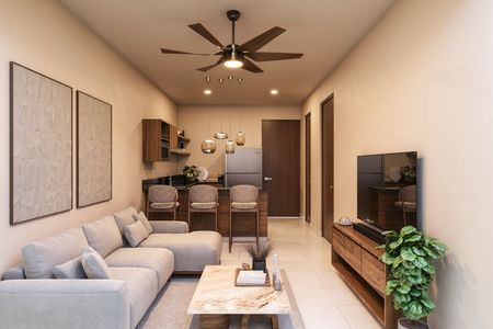 • Sala • Comedor • Cocina • 2 Recámaras con closet • 2 Baños completos • 1/2 Baño • Cuarto de servicio